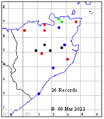 males probably under recorded because of day flying habit. Photograph of recently emerged female on cocoon © Angus McBay.Photograph of male © Jane Erridge. Photograph of larva © Sandie Mackay Photograph of eggs and newly hatched larva © Fergus Mather Scottish Status: Now widespread especially in the E - range expansion in W but possible declining in the E UK Status: Common UK abundance trend shows very large increase since 1970 (cf: Atlas of Britain & Ireland's Larger Moths) First and last flight dates recorded in Caithness: 30th July to 22nd October ![]() MAP: black dots last record pre 2000 blue dots last record 2000 to 2009 red dots last record 2010 to 2019 green dots last record 2020 to present |